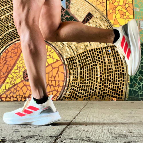 I runfess… I have never tried Adidas running shoes in all these years. Hard to believe – right? I learned that white sneakers are back, so I went to grab a pair of white Ultraboost 5X sneakers. It turned out that the white/off white and orange were a better price, so I went for those in the end. You know I love a deal! I got some cute white kicks for non-running summer fun. Are you up on this trend?