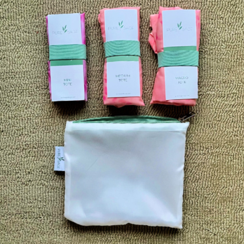 I met Lee Flanagan from Pure Sage this year at Expo West. They make beautiful, sustainable tote bags from 100% recycled plastic. They use plastic bottles removed from oceans and landfills. Lee sent me some bags to use and share. Recently I scored some buy one get one free so I’m going to send one of the two sets I got to a lucky reader.